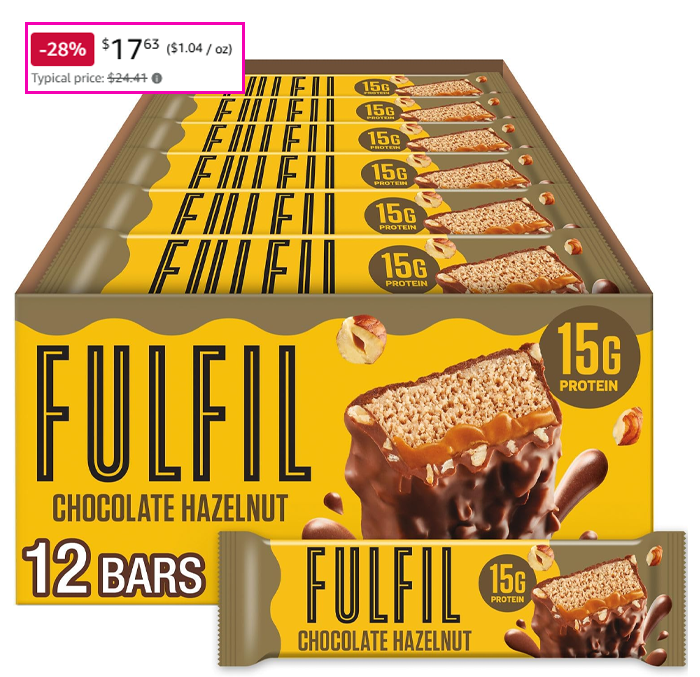 FULFIL Protein Snack Bars, Chocolate Hazelnut Flavored, Gluten Free, 12 Count for $20.74 (Reg $24.41)