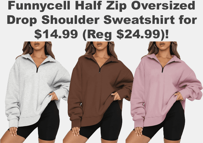 Funnycell Half Zip Oversized Drop Shoulder Sweatshirt for $24.99
