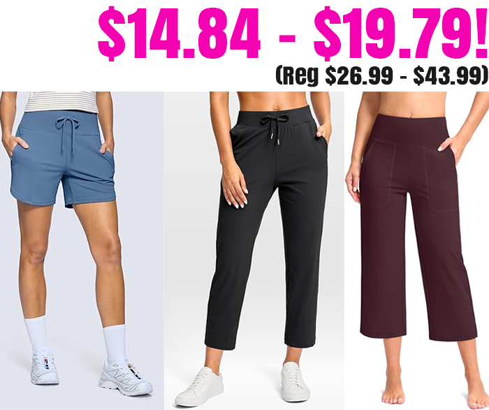I love this brand! They have shorts, capris, and pants all on sale right now! They are all available in a bunch of colors and sizes S-3XL.