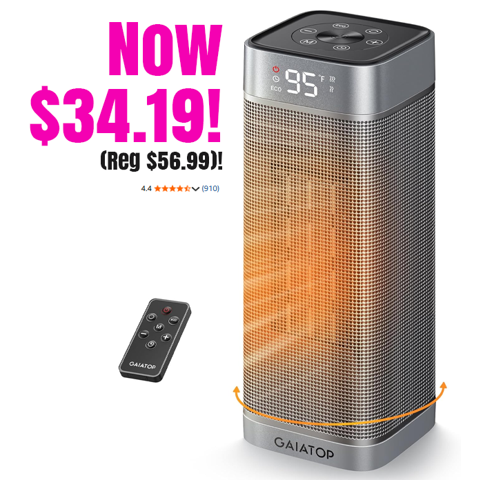 Gaiatop 1500W PTC Ceramic Oscillating Room Heater for $56.99