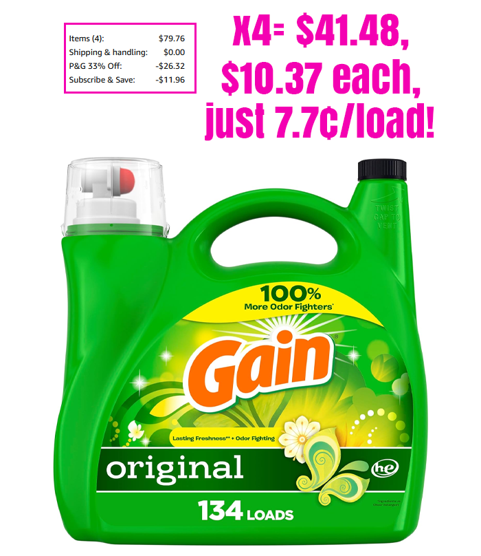 For example, add 4 Gain Liquid Laundry Detergent, Original Scent, 194 fl oz, 134 loads to your Subscribe and Save order. It will look like you can only add 3, but at checkout you can add one more.