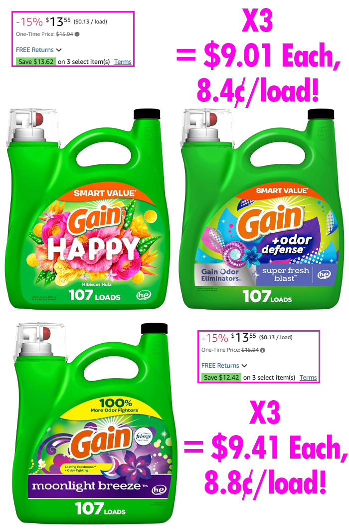 - Pay $27.03 or $31.81, as low as $9.01 each or 8.4¢/load!