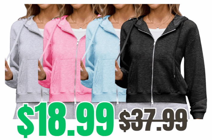 Gardenwed Womens Zip Up Hoodies from $18.99 (Reg. $37.99)