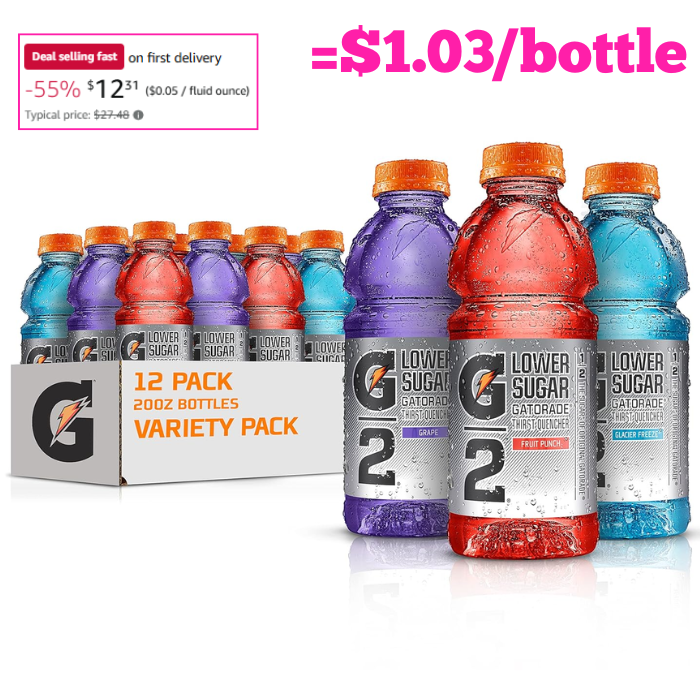 Gatorade G2 Thirst Quencher Sports Drink, Variety Pack, 20oz Bottles, 12 Pack for $12.31 (Reg $27.48)!