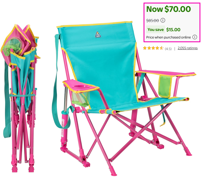 GCI Outdoor Kickback Rocker Foldable Rocking Camp Chair for $70 (Reg $85)!