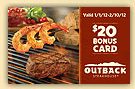 Get a $20 Outback Steakhouse Bonus Card with a $100 Gift Card Purchase online!