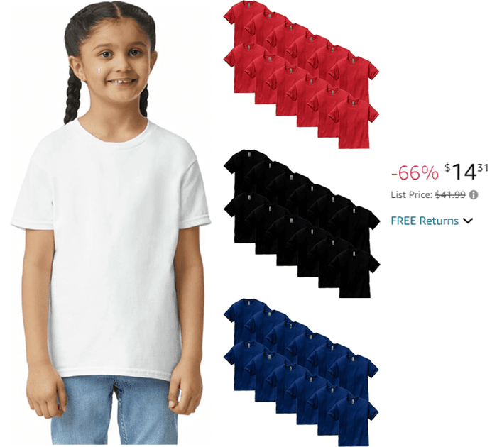 Gildan Youth Ultra Cotton T-Shirts, 12 Pack for $14.31 (Reg $41.99)!
