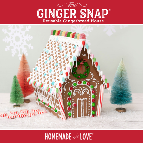 The Ginger Snap Reusable Gingerbread House is ready to decorate in just 6 easy snaps! Don’t put off the time-honored tradition of gingerbread house decorating because making real gingerbread is kind of a MESS with kids.