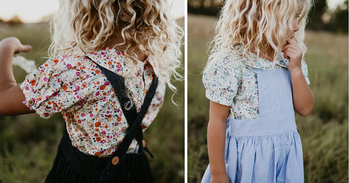 Oh my goodness, if these aren’t the sweetest apron style pinafore dresses! They come in sizes 12/18 months – 12 in black or blue, and you get to pick a floral top to go with them.
