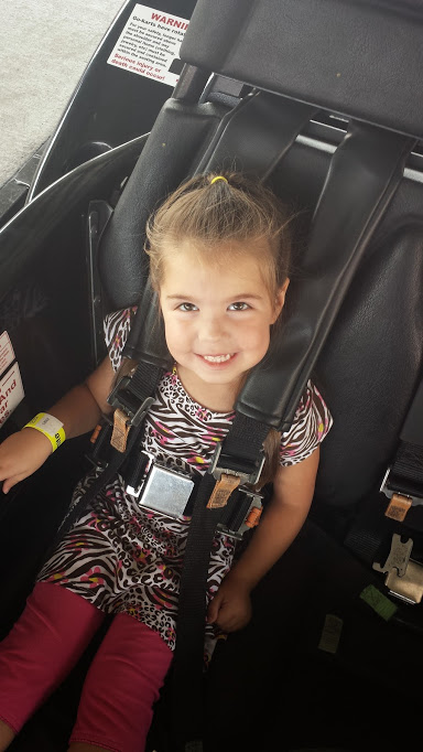 We started outside on the slick tracks before it got too hot. My girls were so excited that they were tall enough to ride along. They loved it and wanted to go faster and faster. We came back to do this multiple times because it was so much fun.