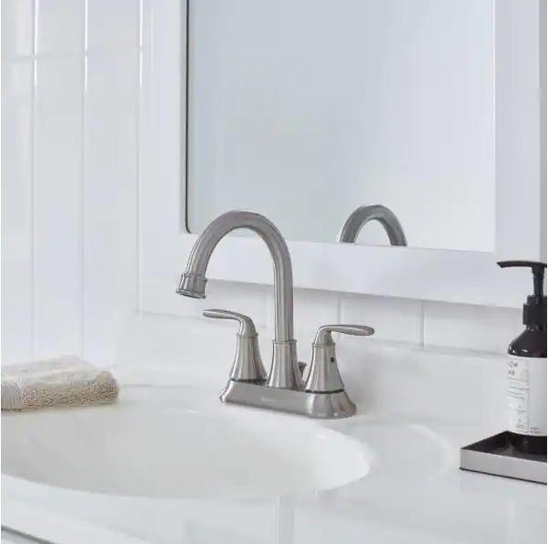 Glacier Bay Sadira 4 in. Centerset 2-Handle High-Arc Bathroom Faucet in Brushed Nickel for $22 (Reg $44)!