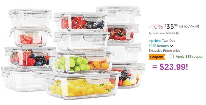 12 Sets Glass Food Storage Containers with Lids for $35.99 (Reg $39.99)