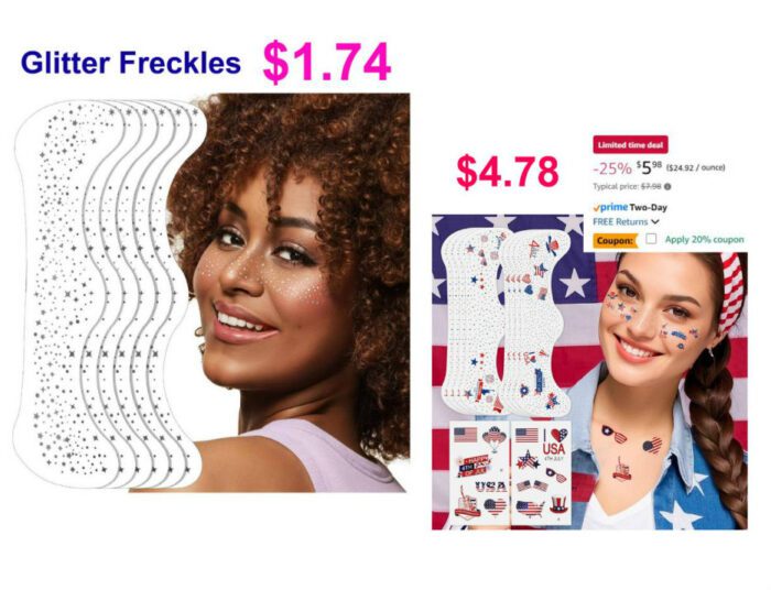 8-Pack USA Face Glitter Star Freckles Temporary Tattoos $5.98 (reg $7.98)