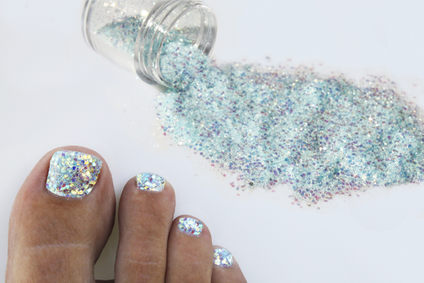 Let me introduce you to my new favorite thing ever. Glitter toes. I love them! They’re a fun new way of adding glitz and glam to your toes, without acrylic or other professional services needed!