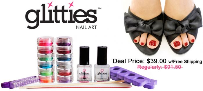 I mean, look how cool that is! This would be perfect for Halloween, it’s just around the corner!!! Today, Glitties, is offering over 50% off their DIY Glitter Toes kit just in time for the holidays.