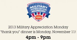 Veterans & US Military (retirees, veterans, active duty, National Guard or Reserves) can go to Golden Corral on November 11 between 4 pm and 9 pm to get a FREE meal!