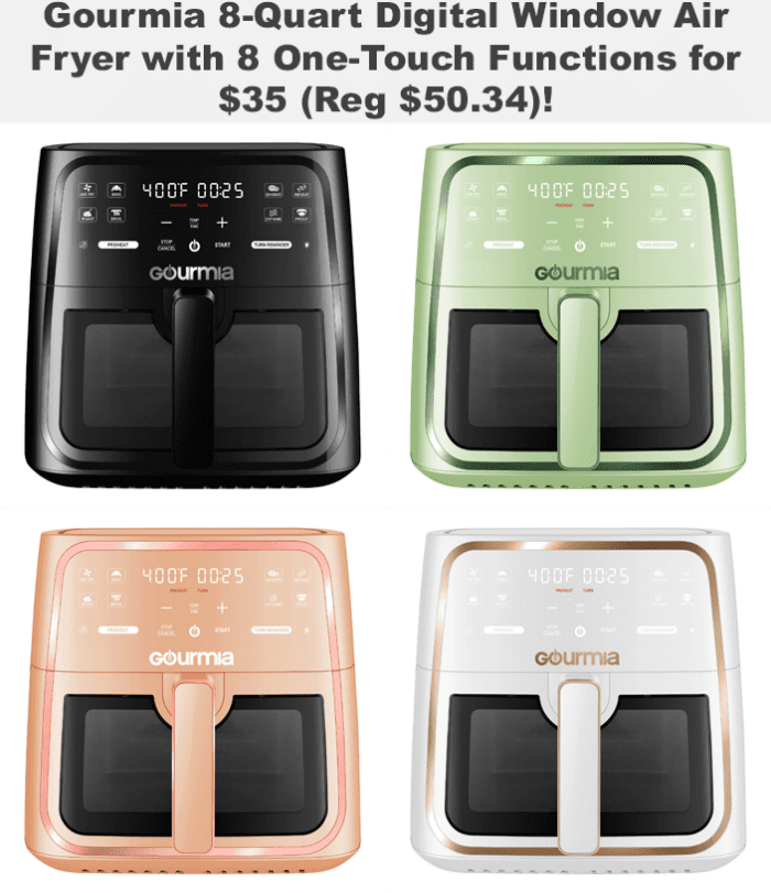 Gourmia 8-Quart Digital Window Air Fryer, with 8 One-Touch Functions for $35 (Reg $50.34)!