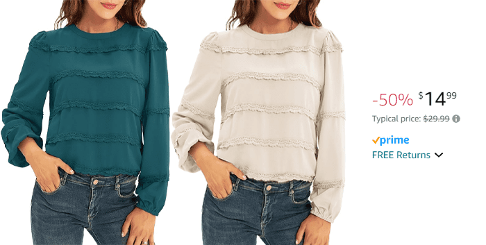 GRACE KARIN Long Sleeve Lace Blouse for $14.99 (Reg $29.99)!