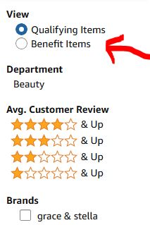 Next change the view to “Benefit Items”- This is where I added the Under Eye Patches to my cart (listed at $9.95)