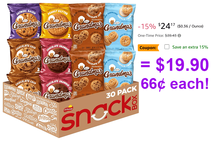 Grandma’s Cookies, Variety Pack, (Pack of 30) for $19.90 (Reg $28.43)! *66¢ Each!*