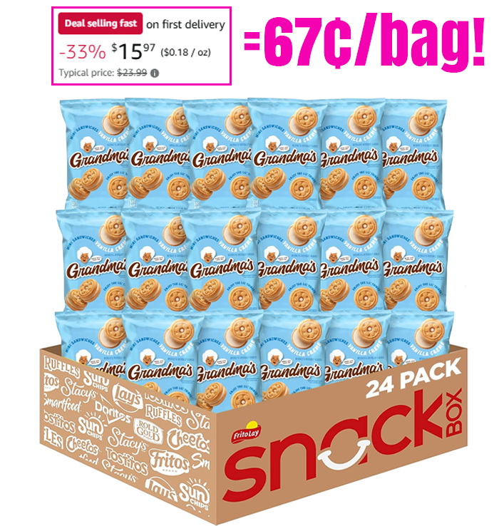 Grandma’s Mini Cookies, Vanilla Sandwich Crème Cookies, 3.71 oz Cookie Bag, (24 Pack) for $18.79 (Reg $23.99)