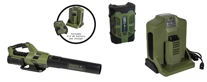 Green Machine 62V Cordless Axial Blower Variable Speed Brushless Motor, 123 MPH Max air speed, 655 CFM, 4 Ah Battery & Rapid Charger for $74.69 (Reg $298.75)