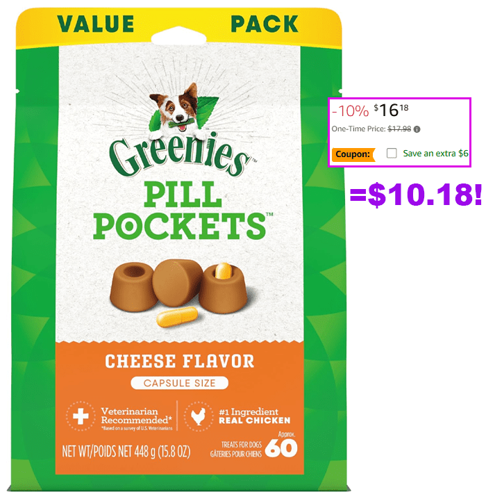 Greenies Pill Pockets, Cheese Flavor (60 Treats) for $10.18 (Reg $17.98)!
