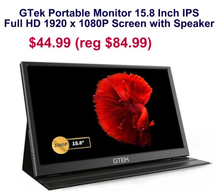 GTek Portable Monitor 15.8 Inch IPS Full HD 1920 x 1080P Screen with Speaker $84.99