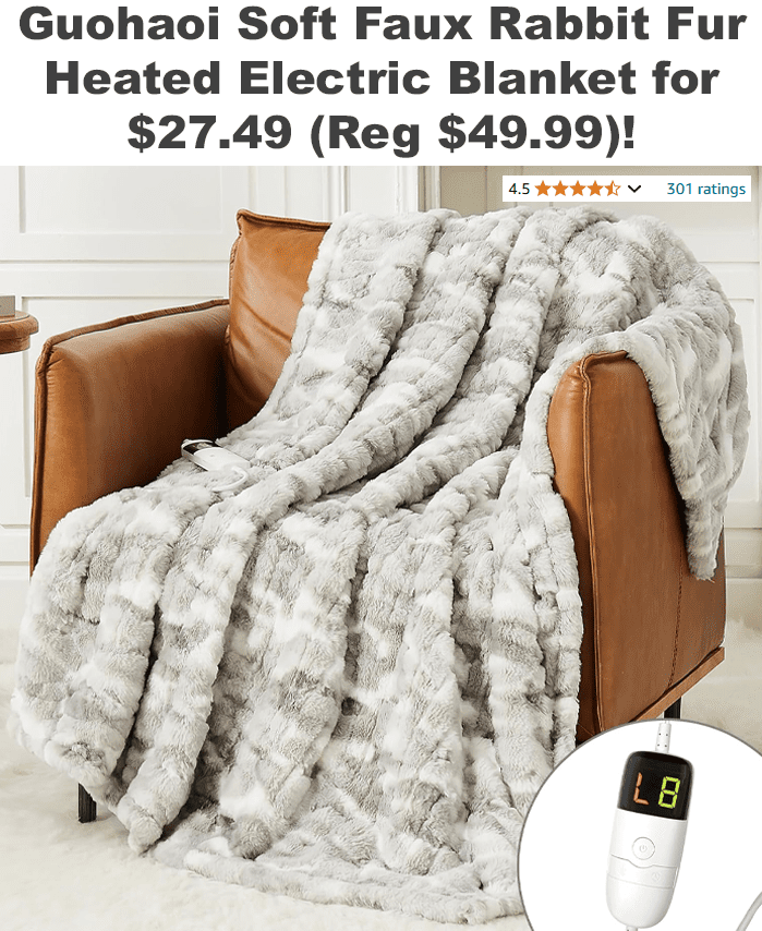 Guohaoi Soft Faux Rabbit Fur Heated Electric Blanket for $42.49 (Reg $49.99)!