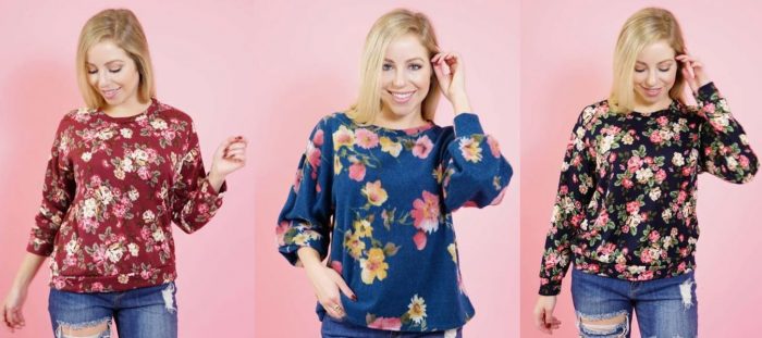 This top is so cute for winter and spring!  Choose from 4 prints in sizes Small-Large.