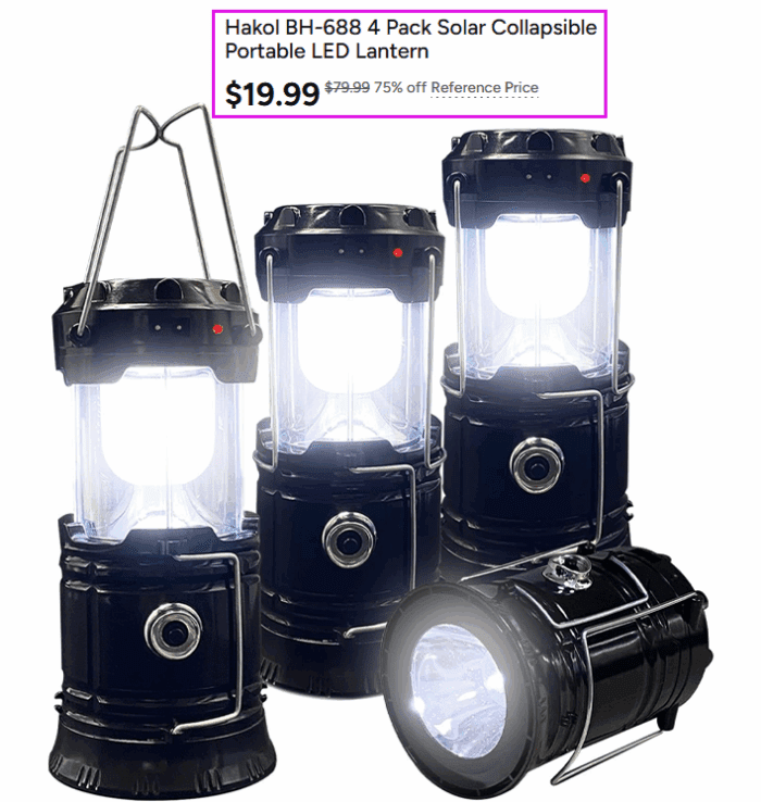 Hakol 4 Pack Solar Collapsible Portable LED Lanterns for $19.99 (Reg $79.99)!