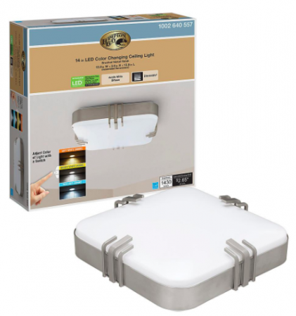 Hampton Bay: 14 in. Square Brushed Nickel LED Dimmable Mount Ceiling Light 1430 for $16.97 (Reg. $44.88)