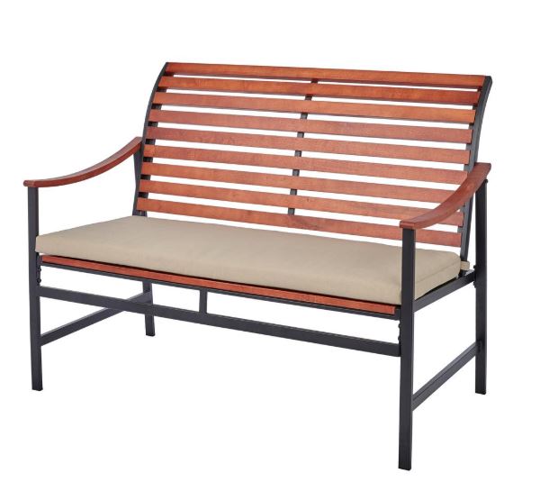 Hampton Bay Wood Outdoor Bench with Cream Cushion $99.50 (reg $199)