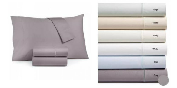 • Set includes: flat sheet (110″ x 104″), fitted sheet (72″ x 84″ + 18″) and four pillowcases (21″ x 40″)