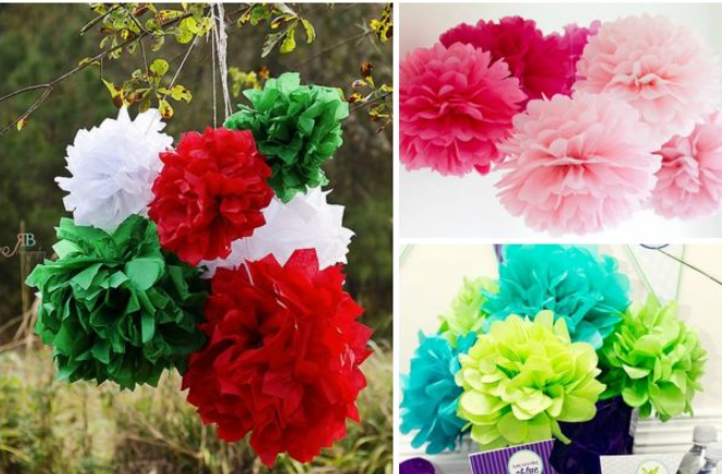 - Tissue poms are one of the hottest trends right now, probably due to the color they add to a room and their versatility. Tissue Poms make great decor for weddings, baby showers, nurseries, and birthday parties!