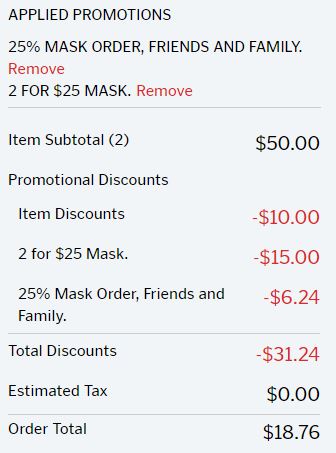 - You can also add TWO packs of 20 to your cart and use codes MASK225 and FFMASKRNX and the price will be just $18.76! That’s only 93¢ for my favorite reusable mask!!
