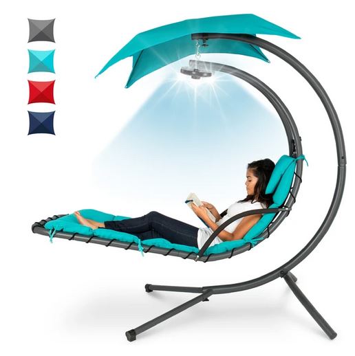 Hanging LED-Lit Curved Chaise Lounge Chair w/ Pillow, Canopy, Stand for $249.99 (Reg $299.99)!