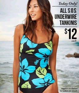 *NOTE: The fine print for the voucher does say “Cannot be combined with any other offer or promotion.” I am unsure if it will work with the $12 tankini deal. If it doesn’t, it’s still a great way to get any of their other suits for 50-60% off.