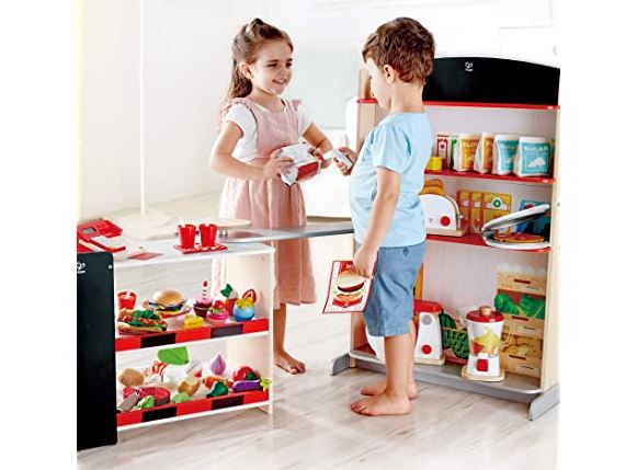 - Imaginative role play: Hape pop-up Shop lets kids play vendor or customer, teaching them about shopping and money. Great for building social skills, language skills, and exploring the world around