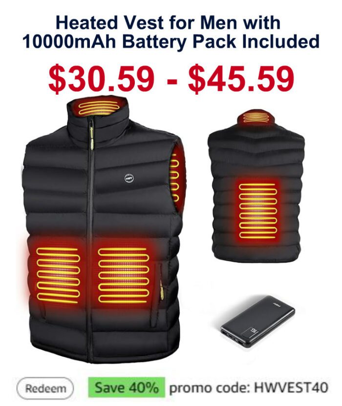 Heated Vest for Men with 10000mAh Battery Pack Included $30.59 – $45.59