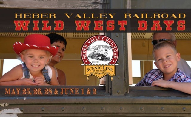 At the depot there are loads of old-west fun, including staged gun fights from the Salt Water Bunch, Dr. Russell’s Magic Show, and Crazy Ani’s Wild West Show. The entertainment at the depot is performed AFTER each train, so plan on staying around for approximately 1 hour after your train returns to enjoy all the fun stuff! You’ll also enjoy the Salt Water Bunch’s Cowboy Camp. The Railroad Saloon will be open for Root Beer Floats and other treats! Bring the whole family and enjoy the Heber Valley Railroad’s Wild West Days this Memorial Day weekend and the first weekend in June.