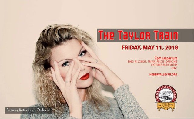 The ride features pictures with the amazing Taylor Swift look-alike Keitra Jane! They’ll have trivia, prizes, dancing in the aisles and an altogether fun night. It is a two-hour round trip departing promptly at 7pm. Arrive early and watch the Old West Gunfights at 6:40pm at the depot prior to boarding!