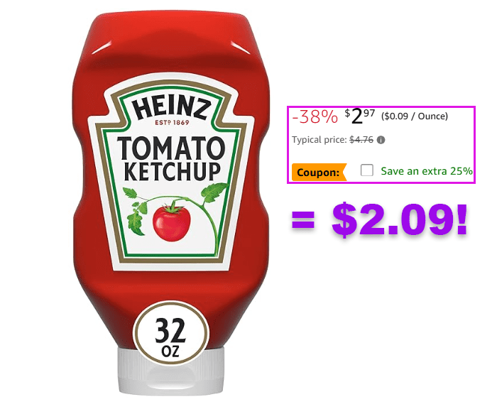 Heinz Tomato Ketchup, 32 oz Bottle for $2.97 (Reg $4.76)
