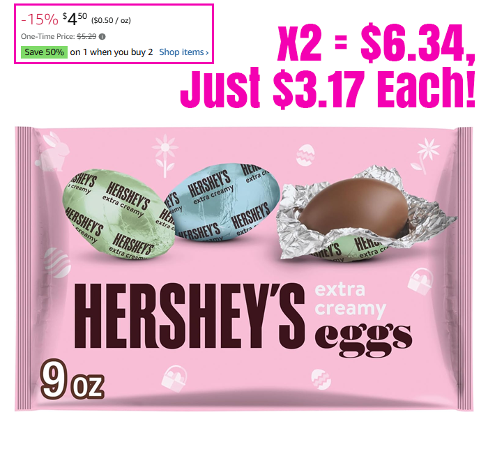 HERSHEY’S Extra Creamy Milk Chocolate Eggs, 9 oz for $3.17 Each (Reg $5.29)!