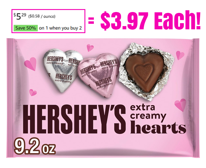 HERSHEY’S Milk Chocolate Hearts, 9.2 oz for $5.29
