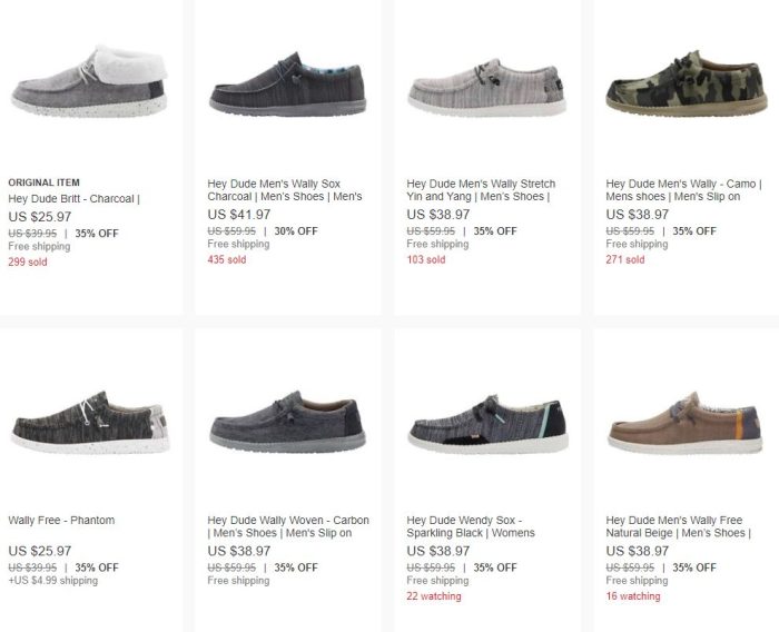 These shoes all sell from the official Hey Dude store on eBay and all have free shipping.
