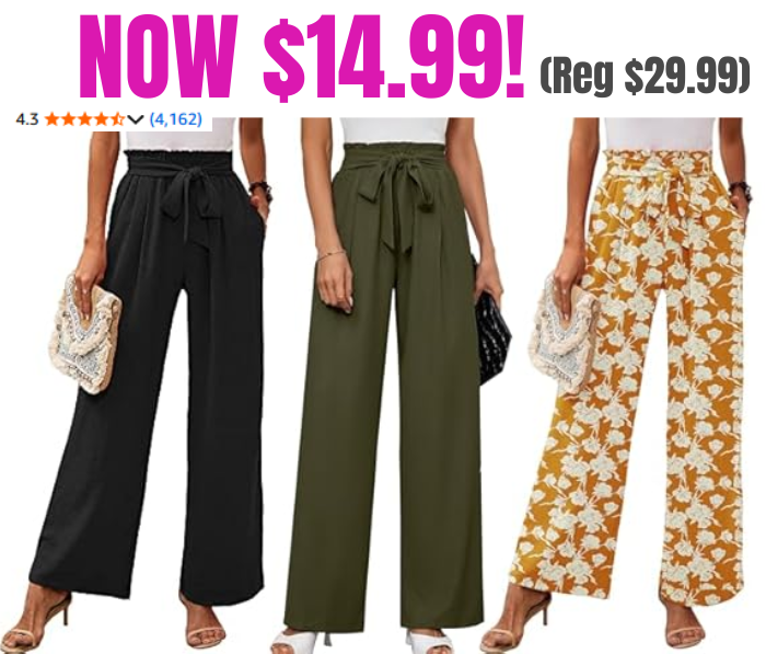 Heymoments Wide Leg Tie Knot High Waisted Pants with Pockets for $14.99 (Reg $29.99)!