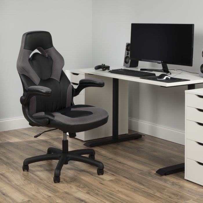 • ADJUSTABLE RACING CHAIR: Features height adjustment, center-tilt control, flip-up arms and 360 degrees of swivel