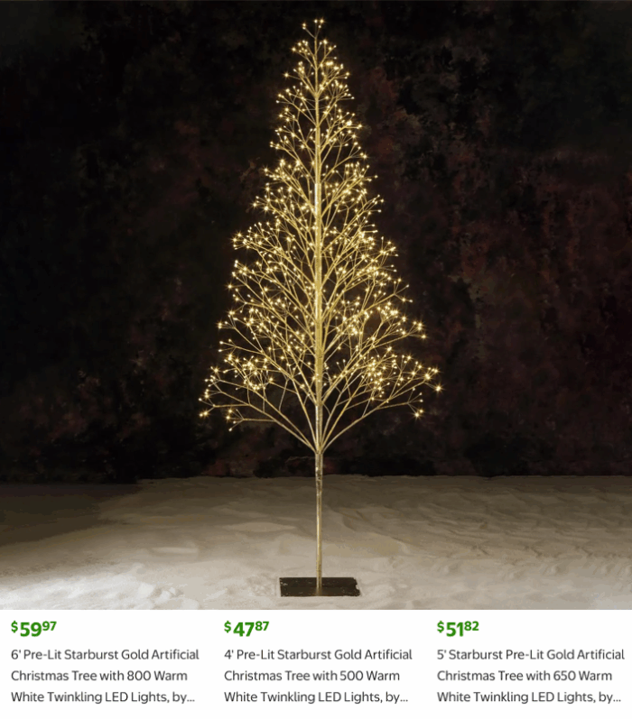 Holiday Time Pre-Lit Starburst Gold Artificial Christmas Trees for $51.82- $59.97! *NOTE: The $47.87 option is sold out.