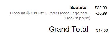 Stay cozy and warm at a great price with this deal for a 4 Pack of Ladies Fleece-Lined Ultra Soft Legging Assorted Colors. They’re available at MoneyBag for $23.99, but when you enter the code SMBSTAYWARM at checkout, you’ll save $6.99 and get free shipping, making them just $17! That’s only $4.25 each!
